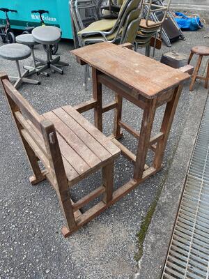 今の机とは違い、イスと一体になった木製のしっかりとしたつくり。