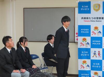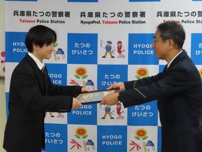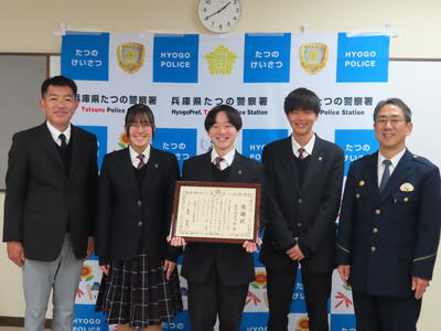 生徒会とこっこくらぶによる特殊詐欺防止や交通事故防止の啓発活動が評価されてたつの警察署長から表彰【12月11日】