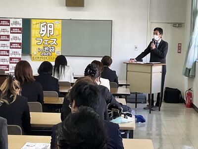 朝に放送されている「THE TIME,」の「全国!中高生ニュース」の企画で、「卵フェス」で全国3位となった、本校の鶏卵「さよたま」とそれに取り組んでいる生徒を、本校の生徒が紹介するといった内容です。全国ネットでテレビ放送されます。