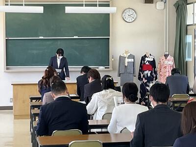 また、昨年度まで家政科長で家庭科でお世話になりました前野先生が、新しい教頭先生として、昨年度まで事務室で主査としてお世話になりました山田さんが、新しい事務長として着任されました。県教育委員会での辞令交付を終えて、午後から教職員一同で玄関でお出迎えをしました。