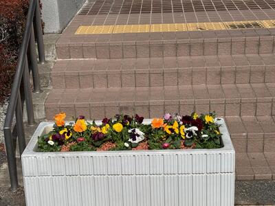 職員玄関の前に、春がそっと並びました。