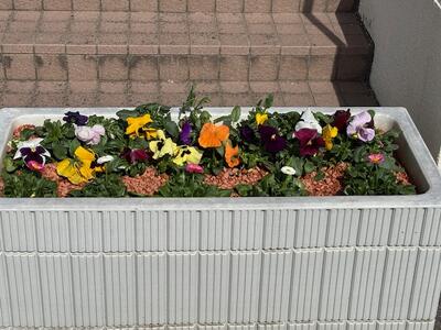 春らしさ全開のコンテナ花壇は、