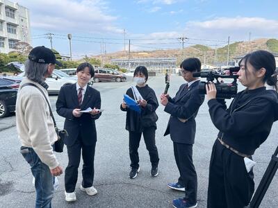 生徒会長の藤田さんをはじめ、生徒会執行部2人と農業科学科の「こっこくらぶ」の生徒6人が取材を受けました。