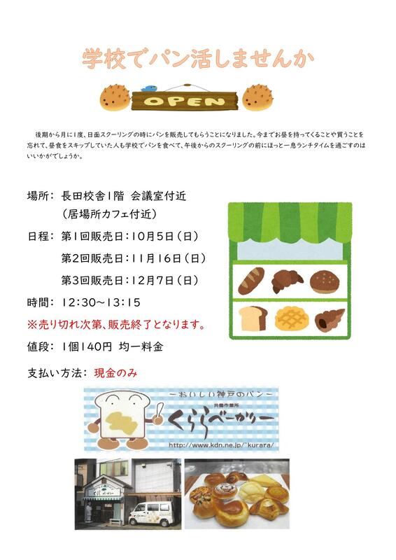 後期から月に1度、くららベーカリーさんのパンを学校で販売することになりました。