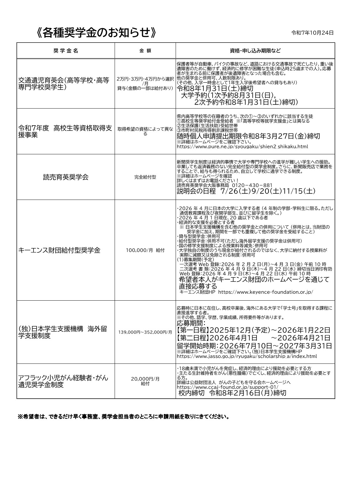 各種奨学金のお知らせです(令和7年10月24日更新).071024奨学金のお知らせ.pdf
