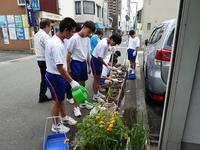 生徒たちは熱心に栄町商店街の「銀の馬車道」でプランターの植栽を行い、地域の方々とふれあうことで、地域社会の一員である自覚を養うことができました。