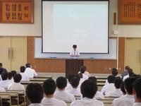 5校時、大講義室において、大塚製薬株式会社ニュートラシューティカル事業部 ソーシャルヘルス・リレーション 塩谷 伸介様より1年次生と運動部代表者を対象として熱中症の予防と対策についてご講演いただきました。