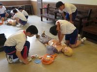 その後、生徒たちがそれぞれ班に分かれて救急救命法の実技を行い、飾磨消防署の方よりご指導いただきました。