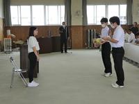 各クラスの代表生徒が全校生徒の前で、自身の生活の中で困難を克服し、意欲的に学び続けた体験を発表しました。