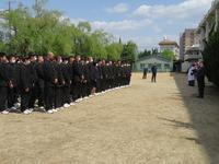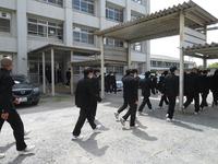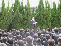 今回は火災発生時を想定したもので、北グラウンドに避難した後、防災担当の総務部長の先生による講話と副校長先生による講評をいただきました。