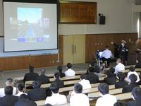 6校時、大講義室において、兵庫県飾磨警察署交通係の方による交通安全講演会がありました。