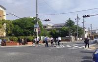 朝7時50分より、警察・PTA・職員合同交通指導を行いました。