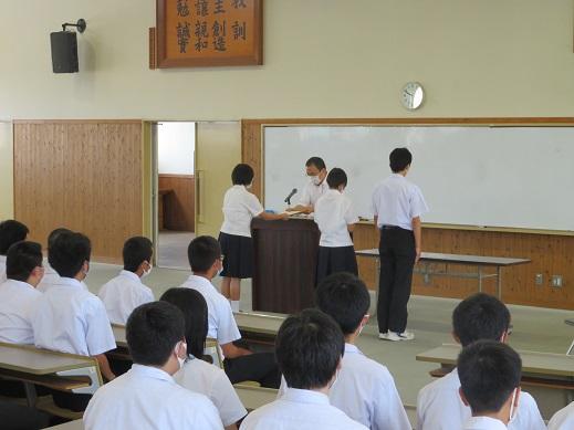 2校時、表彰伝達式が行われました。