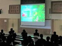 大講義室にて、感染防止対策を実施した上で新入生歓迎映画会を行いました。
