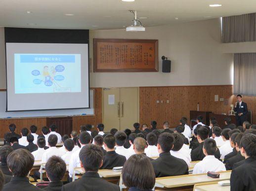 全日制1年次、多部制121年次を対象に、大塚製薬工場OS-1事業部神戸支店 永瀬 務様をお招きし、熱中症や脱水について、ご講話をいただきました。