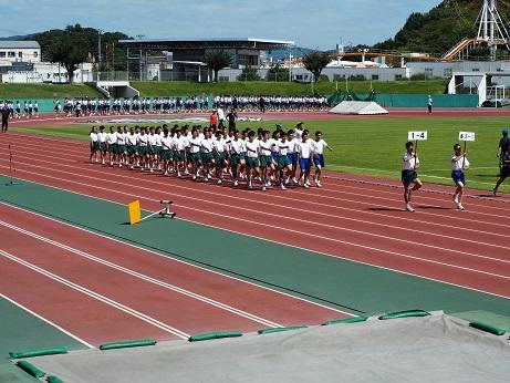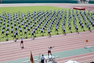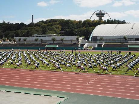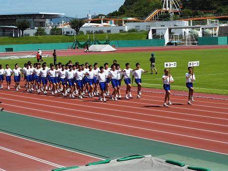 青空の下、ウインク陸上競技場にて、体育大会予行が行われました。