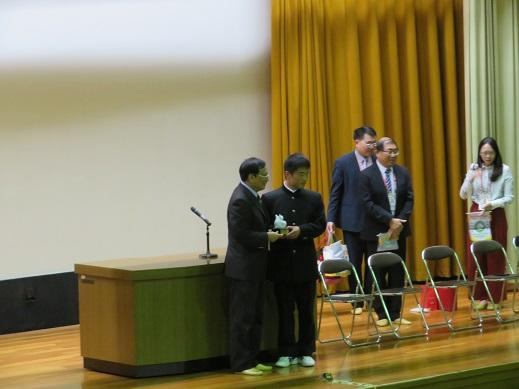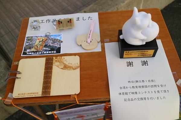 文化部による体育館ステージ発表の後、台湾より来られた教育視察団の方々が来校され、記念品の交換を行いました。その後、映像コンテストをご覧いただきました。