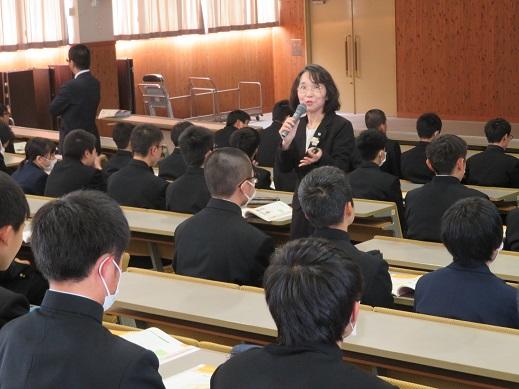 5、6校時に、NPO法人日本ファイナンシャルプランナーズ協会パーソナルファイナンス教育インストラクターの 斎藤 真里子 様より、「新社会人のパーソナルファイナンス」についてご講話いただきました。生徒たちは、卒業後、どのようにお金を貯めていくか、なぜお金を貯める必要があるのか、その仕組みや手段について、また、税金と社会保険、任意保険などについて真剣に聞いていました。