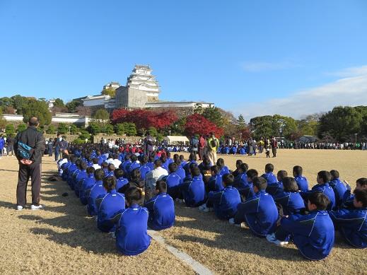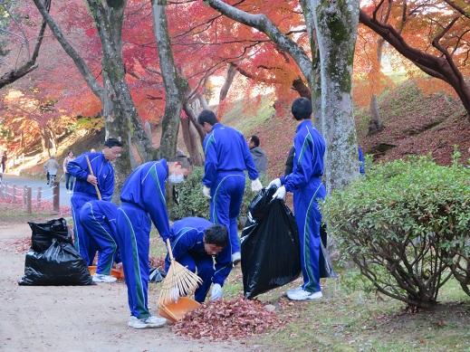 姫路城清掃奉仕活動に参加しました。生徒たちは皆、一生懸命清掃や落ち葉拾いをしました。
