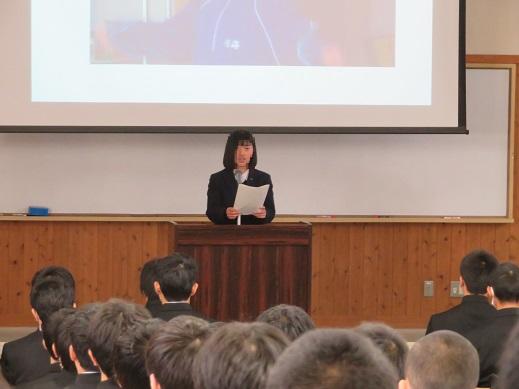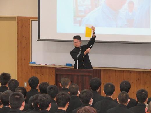インターンシップ全体報告会を行いました。2年次の代表者が、各事業所で体験したことを発表しました。