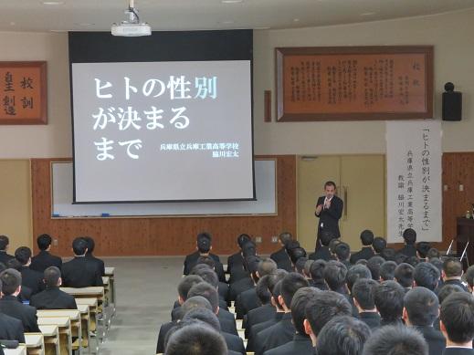 5、6校時に県立兵庫工業高等学校 教諭 脇川宏太先生より「ヒトの性別が決まるまで」についてご講話をいただきました。生徒たちは「性」についての基本理解を深め、自分自身や他者の性を大切にしたよりよい生き方を考えることができました。