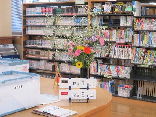 コモンホール、事務室前、図書室、職員室前に飾らせていただいています。