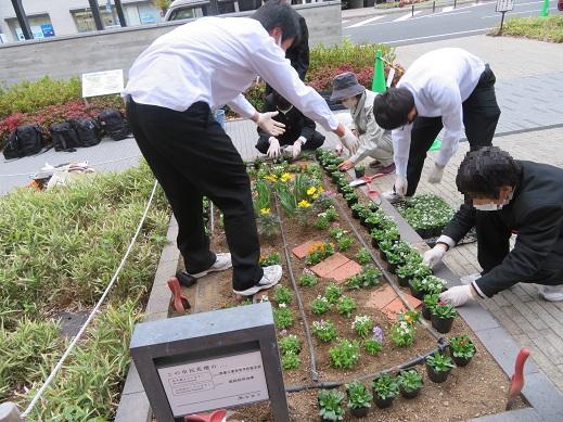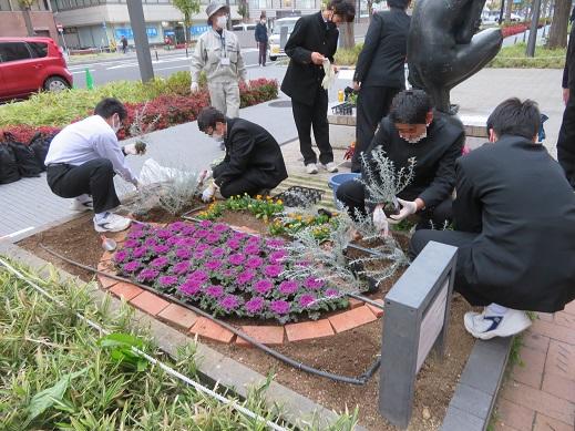 園芸部のボランティア活動として、姫路城大手前通り市民花壇の植栽活動を行いました。