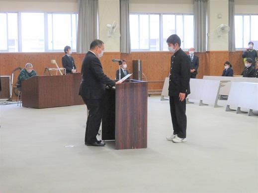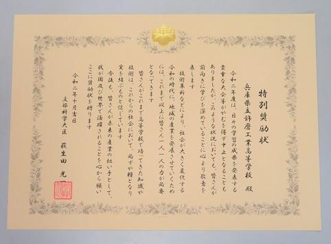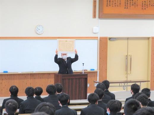 文部科学省 萩生田大臣より特別奨励状をいただきました。1・2部集会で生徒へ披露しました。