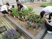 園芸部のボランティア活動として、姫路城大手前通り市民花壇(みずほ銀行前)の植栽活動を行いました。