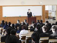 2校時、大講義室において、2年次を対象に11月14日(月)~18日(金)の5日間のインターンシップに向けて事前指導が行われました。