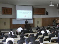 始めに校長先生から献血がいかに大事な役割を果たしている