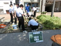 園芸部が参加し、三菱UFJ銀行前の花壇で植栽作業を行いました。