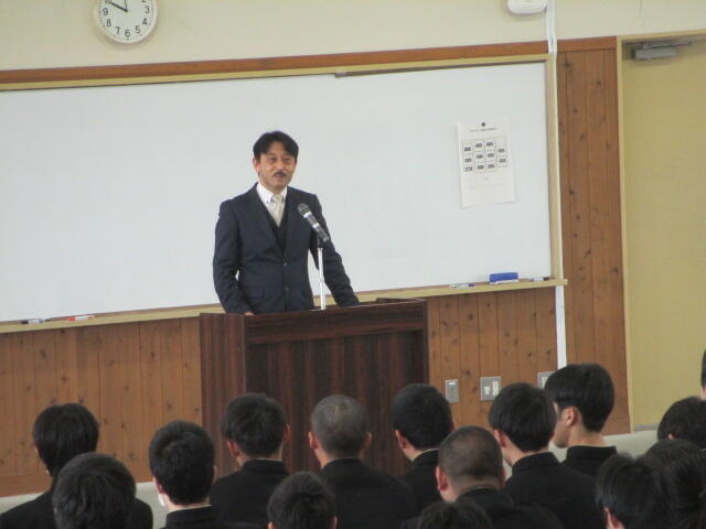 永本校長が挨拶と講話をしました。講話は、掃除を毎日一生懸命にする生徒のエピソードをもとに、