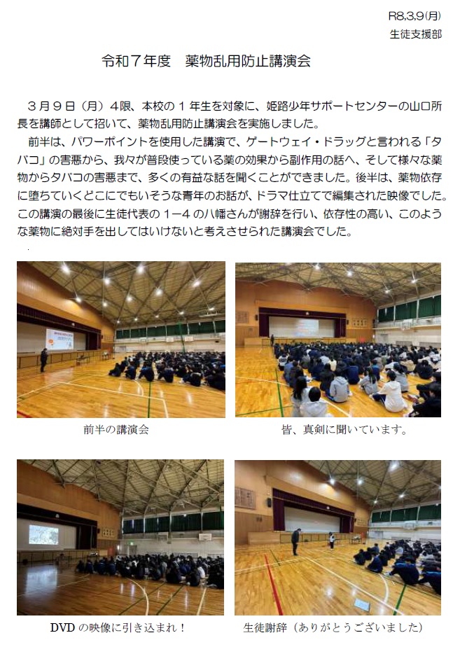 防災避難訓練 終業式 夏季後期補習 体育祭