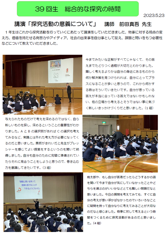 40回生総探:学年代表グループ探究発表会