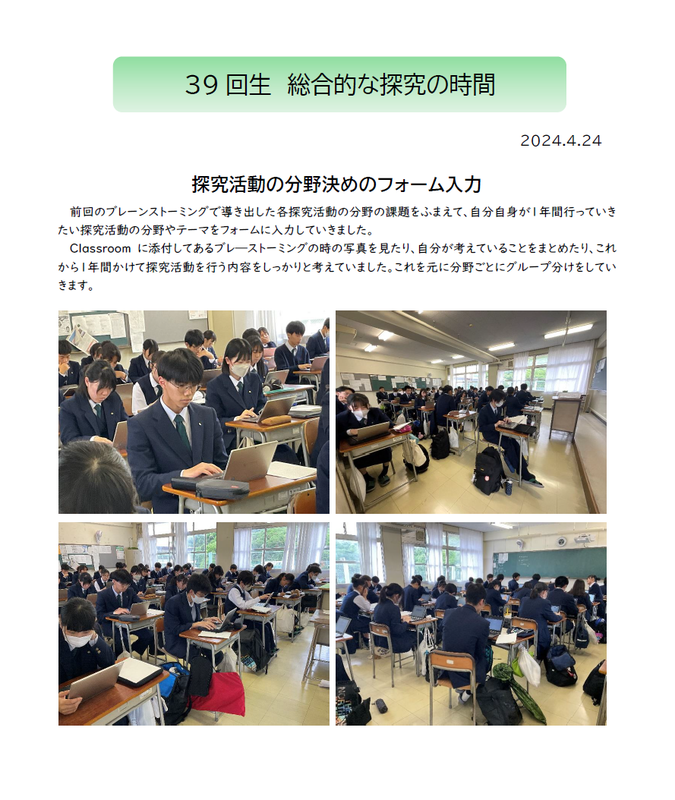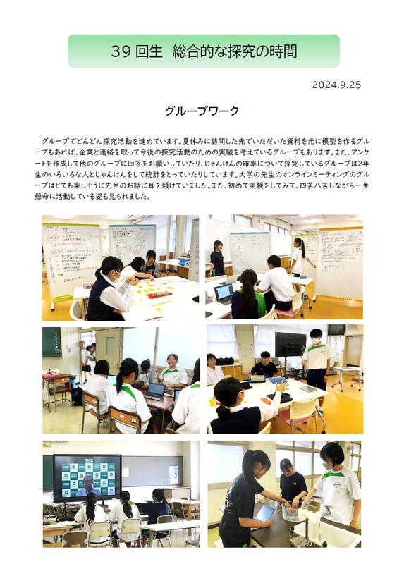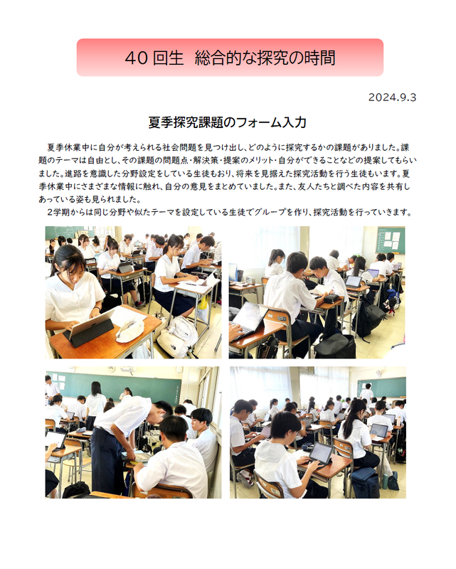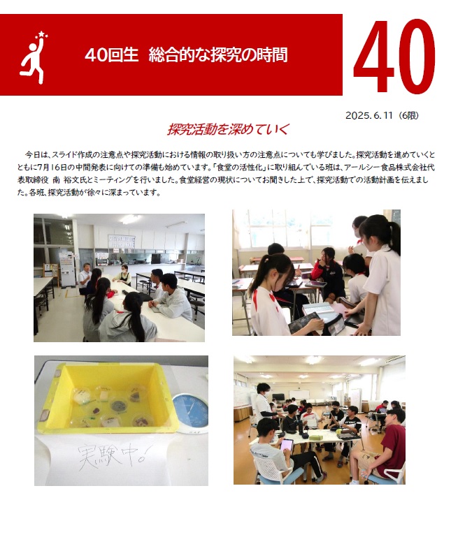 40回生 総探 探究活動を深めていく