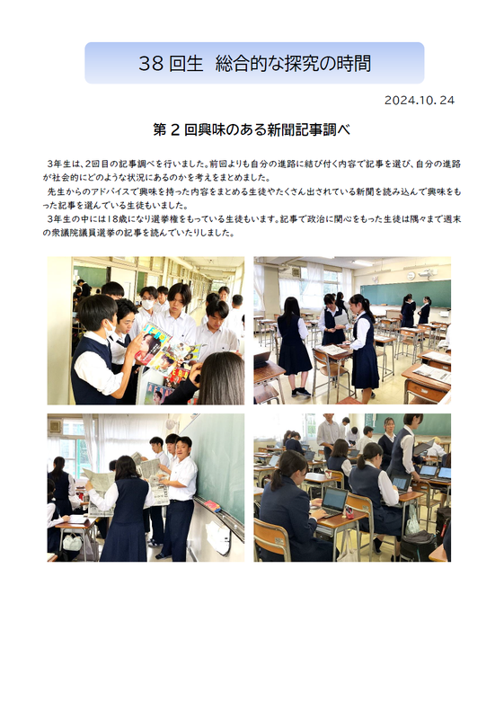 38回生総探:第2回興味のある新聞記事調べ