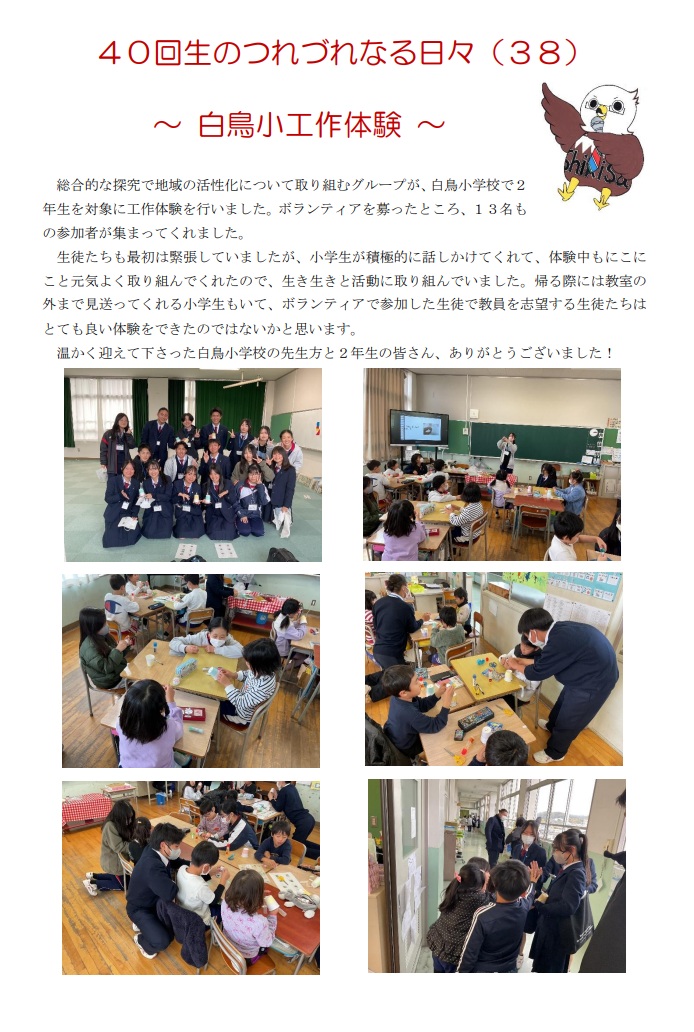 40回生 全ての記事 全ての記事 アーカイブ 2025年12月 (1) 2025年11月 (4) 2025年10月 (5) 2025年9月 (3) 2025年8月 (1) 2025年7月 (4) 2025年6月 (4) 2025年5月 (4) 2025年4月 (3) 2025年3月 (4) 2025年2月 (4) 10件 1件 5件 10件 20件 50件 100件 つれづれ㊳白鳥小ボランティア 投稿日時 : 12/03 40回生 つれづれ㊲学年綱引き大会 投稿日時 : 11/26 40回生 つれづれ㊱学部学科説明会 投稿日時 : 11/19 40回生 つれづれ㉟数学・理科甲子園 投稿日時 : 11/12 40回生 つれづれ㉞学年レク 投稿日時 : 11/05 40回生 つれづれ㉝生成AIセミナー 投稿日時 : 10/31 40回生 つれづれ㉜英語スピーチコンテスト 投稿日時 : 10/29 40回生 つれづれ㉛進路講演会 投稿日時 : 10/22 40回生 つれづれ㉚体育祭 投稿日時 : 10/15 40回生 つれづれ㉙応援合戦練習 投稿日時 : 10/01 40回生 1234 »