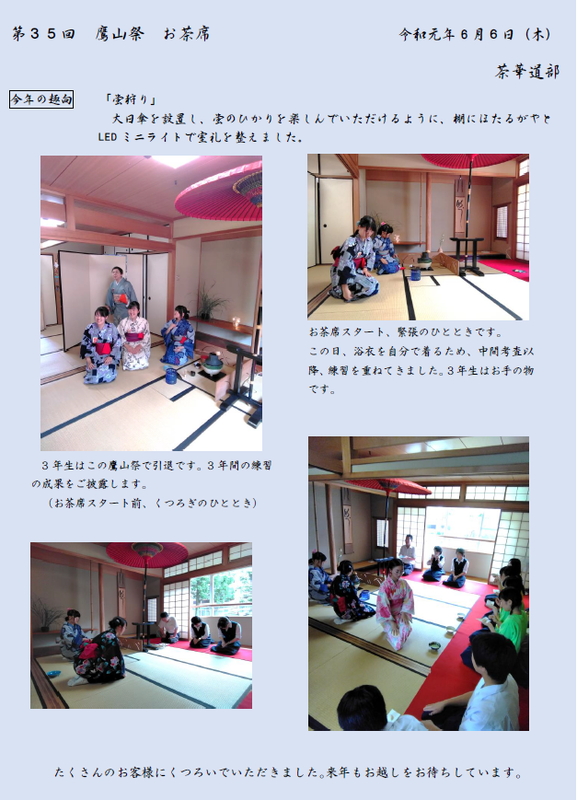 6月の鷹山祭では、お客様も部員も心に残るお茶会ができるよう、練習に励んでいます。
