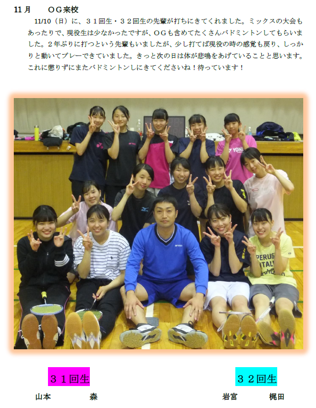 | タイトル | 女子バドミントン部 12月打ち締め |