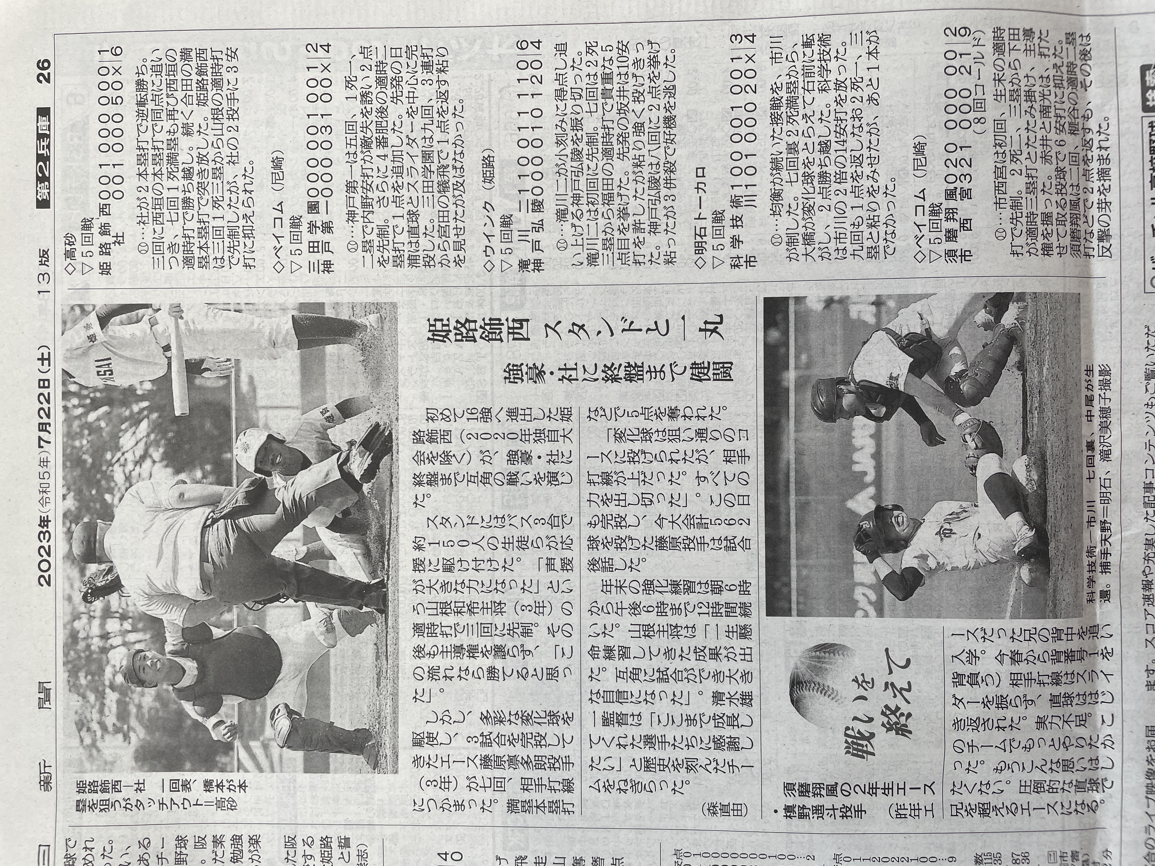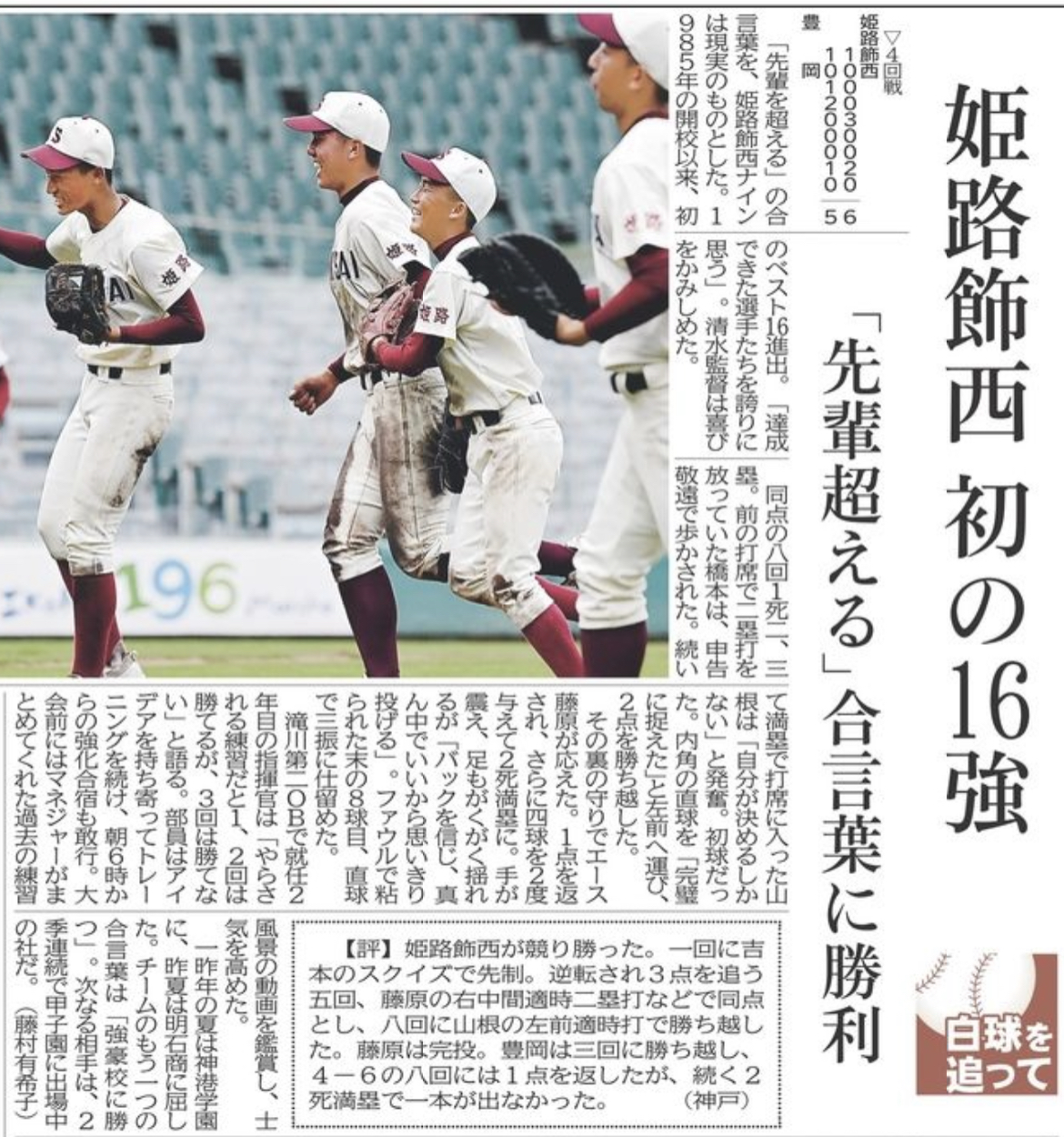 4回戦 姫路飾西 6ー5 豊岡 創部初ベスト16進出