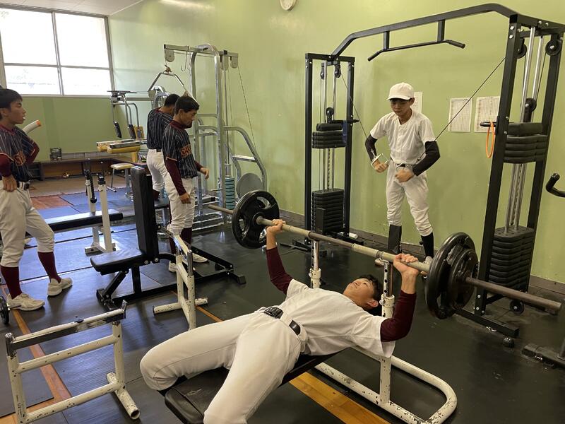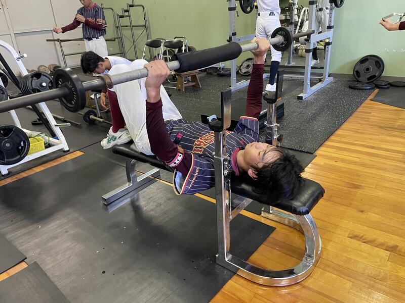 自分の設定した重さを20回~30回動かす。(野球は動かすことが大事なので)