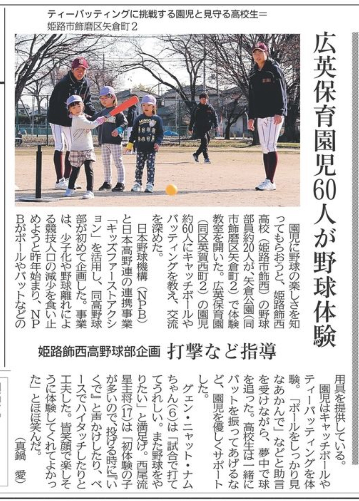 姫路飾西高校野球部の取り組みについて(令和8年1月15日神戸新聞掲載)