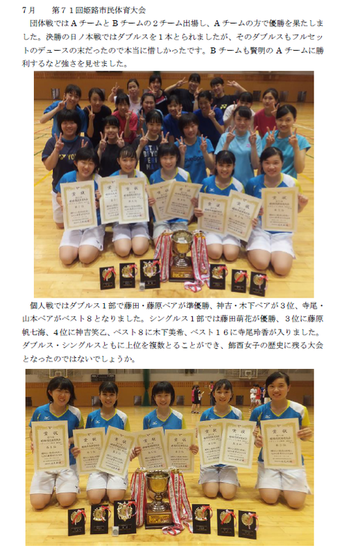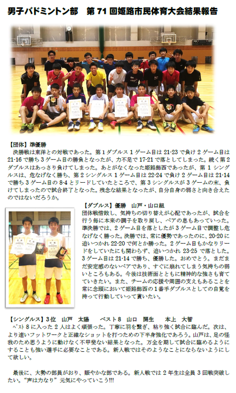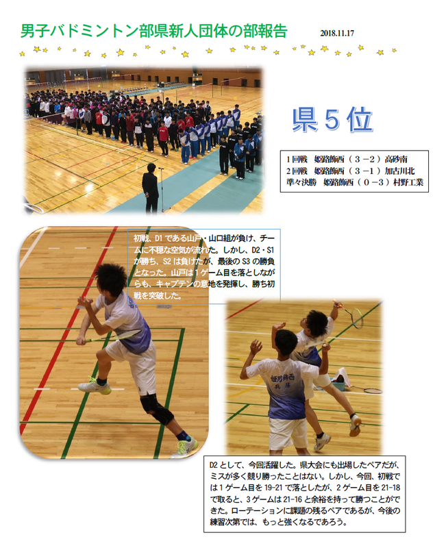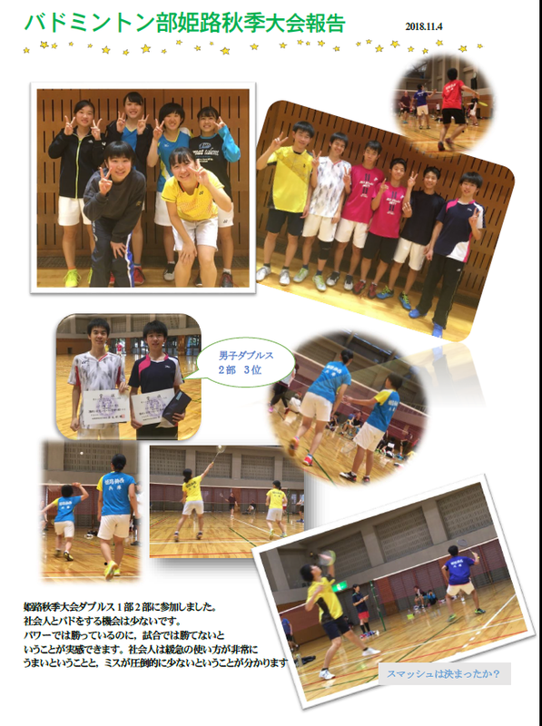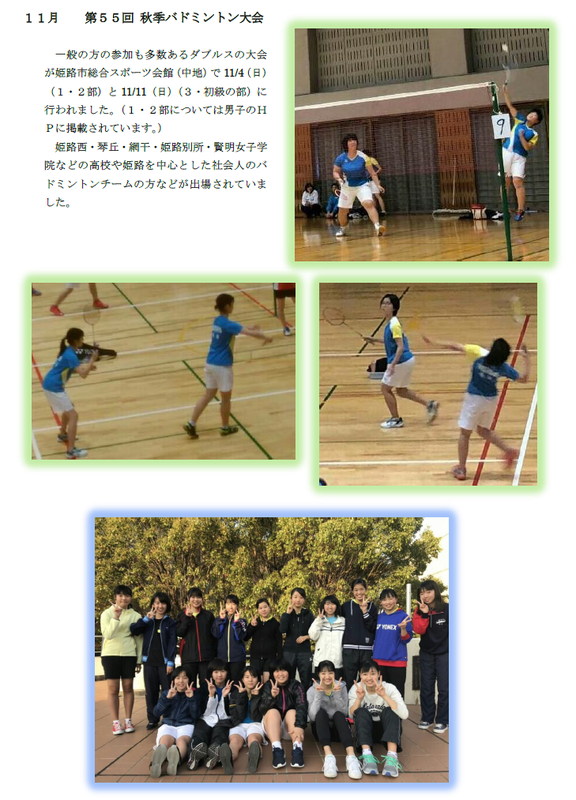 姫路秋季バドミントン大会に参加しました(H29.11.5)