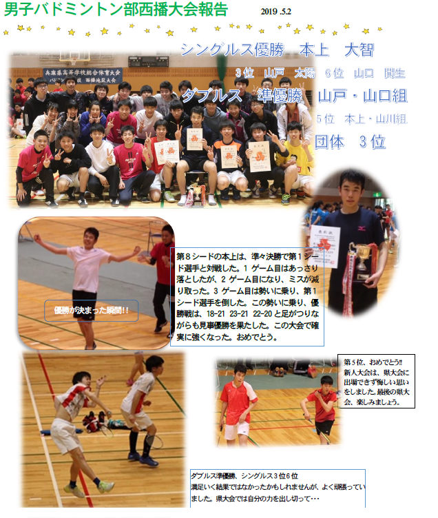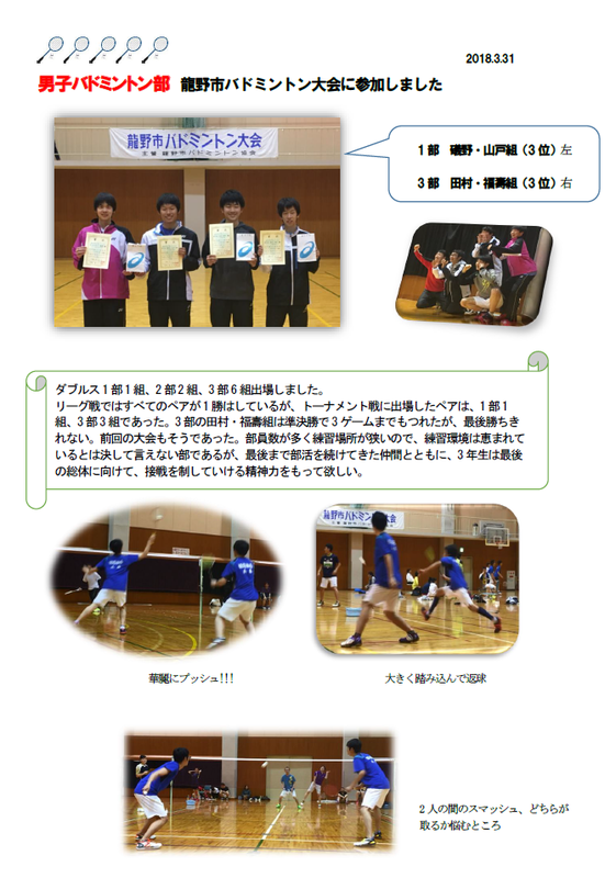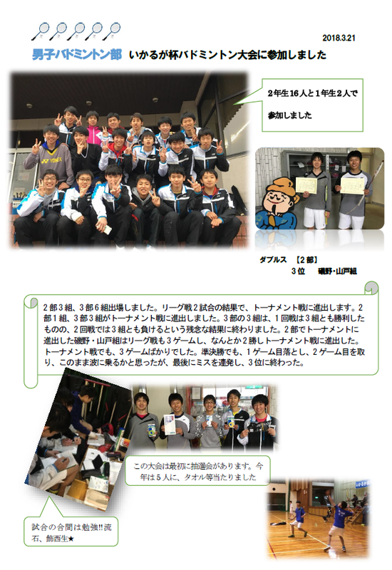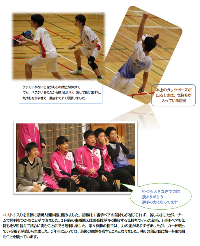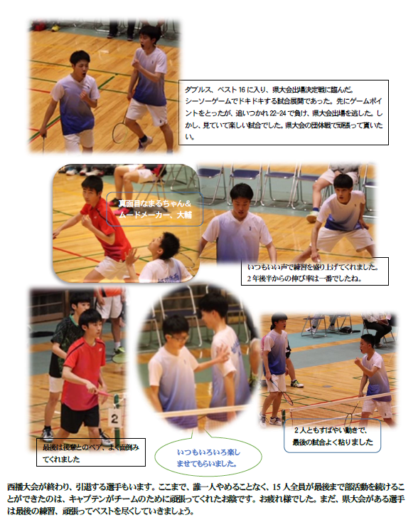 一般の試合に参加しました。高校生から実業団まで、また年齢層は、上は50代までのバドミントン愛好者が汗を流しました。まずは、立ち上がりの悪さとミスの多さが高校生は目立ちます。間近で、上位者の試合を見て、研修していました。この日に参加していない他の部員も応援に駆けつけてくれました。なんか、いいなあと思いました。