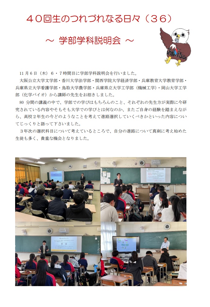 40回生 全ての記事 全ての記事 アーカイブ 2025年11月 (3) 2025年10月 (5) 2025年9月 (3) 2025年8月 (1) 2025年7月 (4) 2025年6月 (4) 2025年5月 (4) 2025年4月 (3) 2025年3月 (4) 2025年2月 (4) 10件 1件 5件 10件 20件 50件 100件 つれづれ㊱学部学科説明会 投稿日時 : 11/19 40回生 つれづれ㉟数学・理科甲子園 投稿日時 : 11/12 40回生 つれづれ㉞学年レク 投稿日時 : 11/05 40回生 つれづれ㉝生成AIセミナー 投稿日時 : 10/31 40回生 つれづれ㉜英語スピーチコンテスト 投稿日時 : 10/29 40回生 つれづれ㉛進路講演会 投稿日時 : 10/22 40回生 つれづれ㉚体育祭 投稿日時 : 10/15 40回生 つれづれ㉙応援合戦練習 投稿日時 : 10/01 40回生 つれづれ㉘全校集会 投稿日時 : 09/17 40回生 つれづれ㉗県大説明会 投稿日時 : 09/10 40回生 1234 »