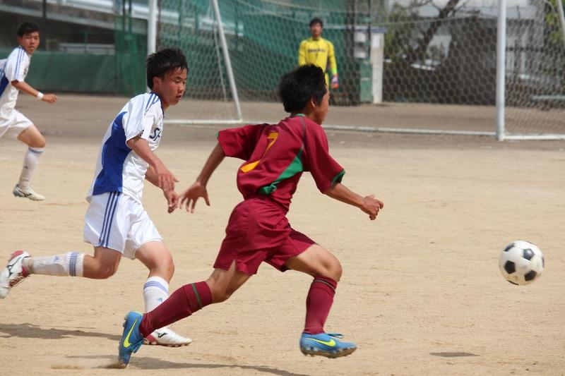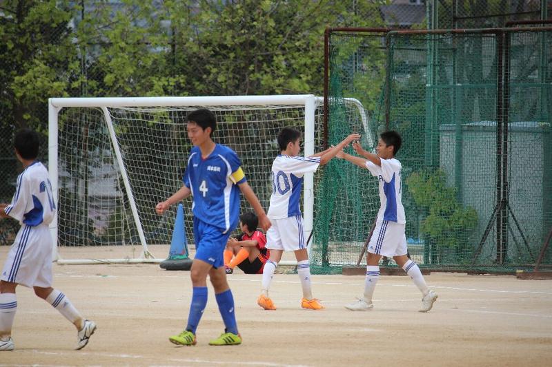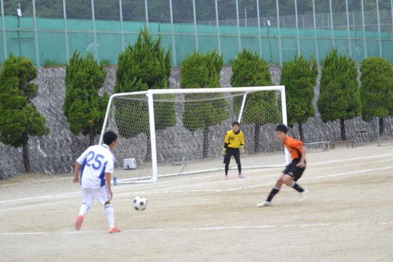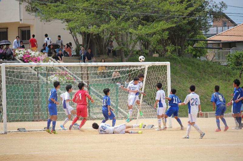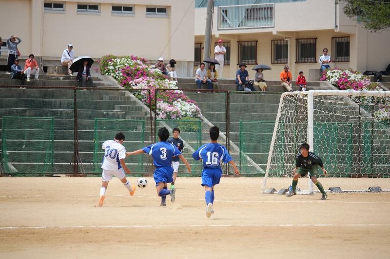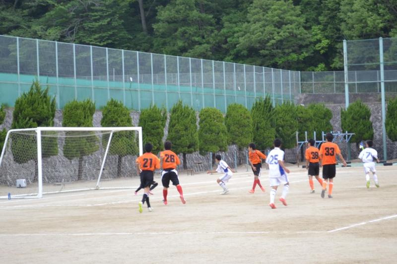 第8節は琴丘高校と対戦。前半は中盤からの寄せ、DFのカバーリングなど組織的な守備が機能し、押され気味の時間でも決定機は作らせない。攻撃面もチャンスは少ないが、良いパスワークを見せ、ゴールに近づいていく。五分の戦いをして0-0で前半終了。後半10分に相手右サイドから攻撃を仕掛けられ、カバーリングも一歩間に合わず、中央で合わされて先制点を許す。その後、ロングシュート、ミドルシュートを決められると勢いに乗った相手を止められず0-4で敗北を喫した。全般に良い内容の戦いができたが、相手の気迫が一歩上回った形となった。しかし、内容的には成長が見られた部分も多く、前半のような戦いを80分通せれば大抵の相手とは十分に戦える自信はついた。次節で西播リーグは一時中断となるが、県総体までの最後の公式戦を良い結果で終わり、自信を持って県総体に臨んでいきたい。
