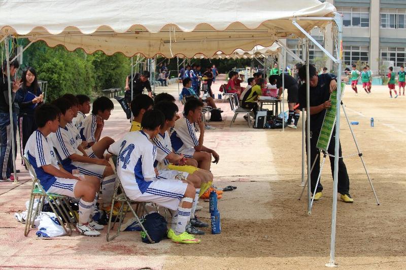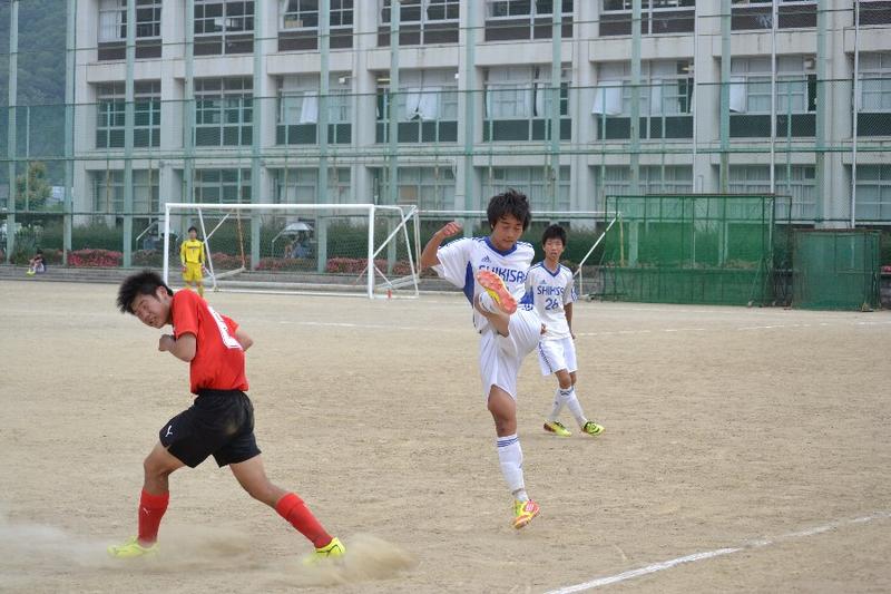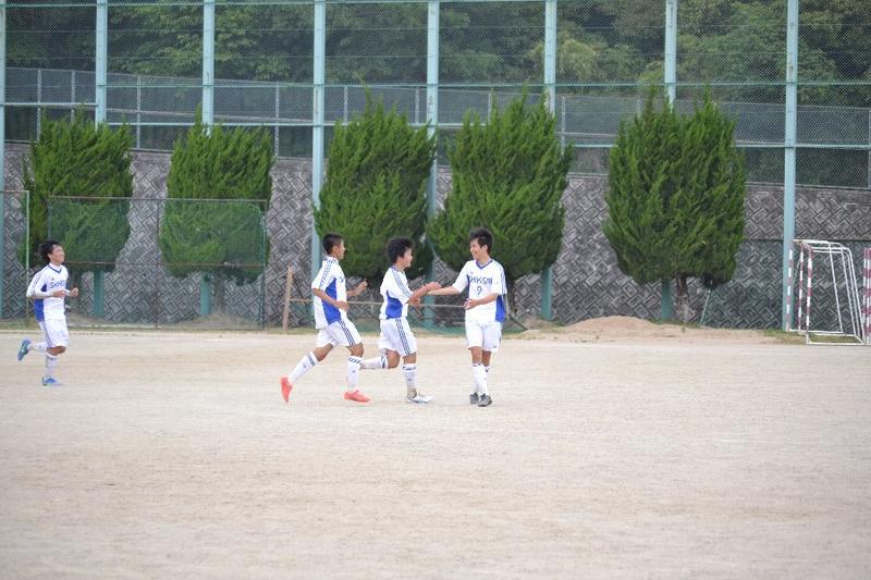 第11節は相生高校と対戦。試合開始直後は動きに精細がなく、不安な立ち上がりを見せたが、徐々にパスがまわるようになり、前半12分に左サイドからのクロスを中央で合わせ先制点を奪う。2分後同じような展開からもう1点を追加し、前半は2-1で終了。後半早々に左サイドを切り込んだMFからのパスを中央のFWが頭で合わせ、追加点を奪う。相手のPKをGKが好セーブするなど粘って守り、試合終了間際には中央をドリブル突破したFWがGKをかわし、4-1で試合終了。この1週間で取り組んできた練習内容を意識し、先週より良いゲームができた。来週は現在2部リーグの首位を走る赤穂高校と対戦。真価が問われる試合になる。