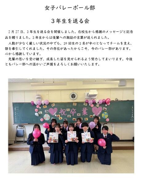 女子バレーボール部 3年生を送る会