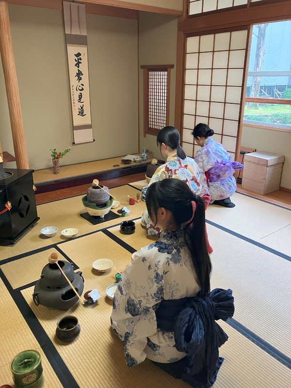 本日から浴衣を身につけてお稽古を始めました。2,3年生は着付けも御手の物です。